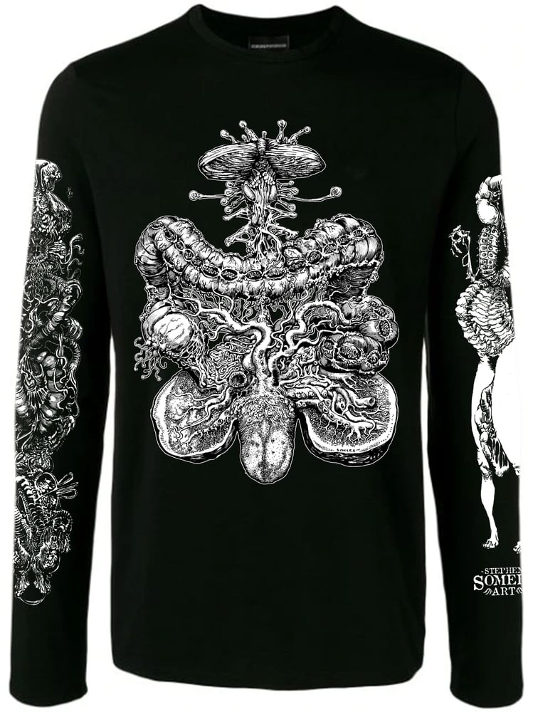 A delightful long sleeve shirt certain to wow your friends and make you the star of the party! Wear it to weddings, funerals, keggers, church, wherever you find yourself needing warm arms and dope graphics. Lovingly drawn by Stephen Somers, printed in exquisite detail, this shirt will make up for all the love that is missing in your life.